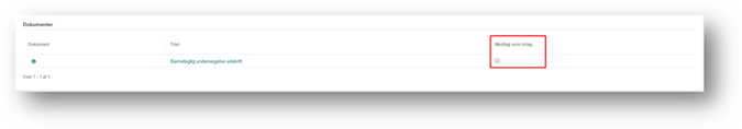 Hvis du ønsker, at dokumentet skal medtages som bilag til den ungefaglige undersøgelse, markeres dette i kolonnen ’Medtag som bilag’. Dokumentet vil herefter fremgå som bilag til den endelige rapport, der dannes, når undersøgelsen afsluttes.