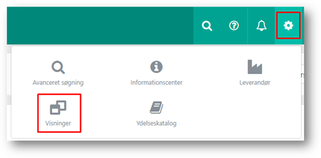 Via tandhjulsikonet kan du tilgå administration af visninger. Her kan du oprette, redigere og slette dine egne personlige visninger.