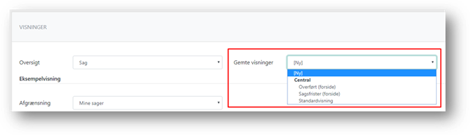 Herefter kan du vælge om du vil tage udgangspunkt i en af oversigtens eksisterende visninger eller om du vil oprette en visning fra bunden. Vælger du ”[Ny]” oprettes visningen fra bunden.
