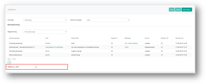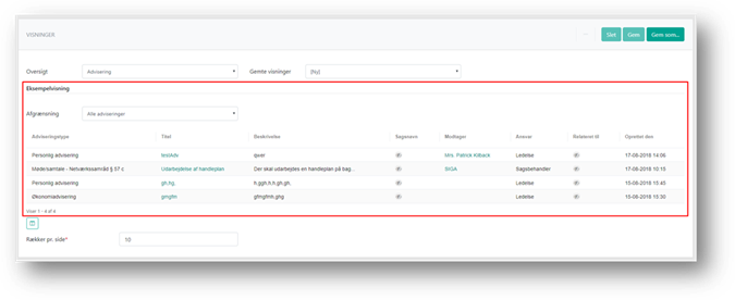 Klikker du på Gem, gemmes de ændringer du evt. har lavet til visningen. Det er ikke muligt at vende tilbage til en tidligere version af visningen efter en rettelse er gemt.