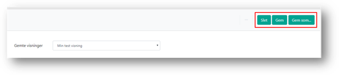 Hvis du har valgt en eksisterende visning i Gemte visninger feltet er alle tre knapper i højre hjørne aktive.