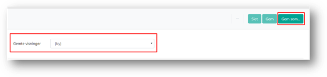 Hvis du har valgt ”[Ny]” i Gemte visninger feltet, eller en visning du ikke har rettigheder til at redigere (lokale og centrale visninger), vil det kun være knappen Gem som… der er aktiv.