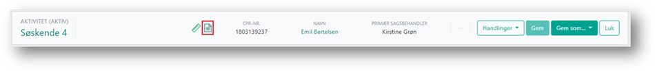 Ved at klikke på ”Hent PDF” åbnes en ny fane med udskriften af aktiviteten. PDF-dokumentet bliver ikke gemt på hverken sagen eller aktiviteten.